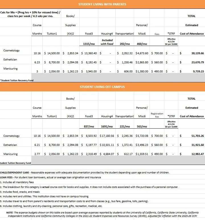 We do not want the cost of tuition to prevent anyone from achieving their goals in the salon and spa industry.